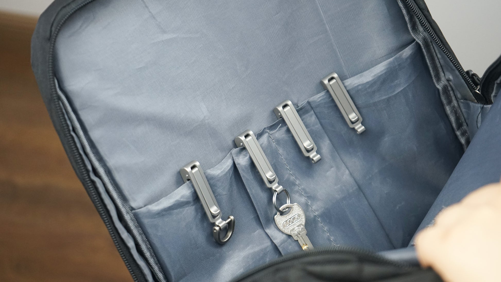 Omniclip uses a 2.5mm titanium spring plate that constantly applies pressure on the latch. Even if you deliberately try to open it, the mechanism will snap back into place within a set range, ensuring your keys stay secure.